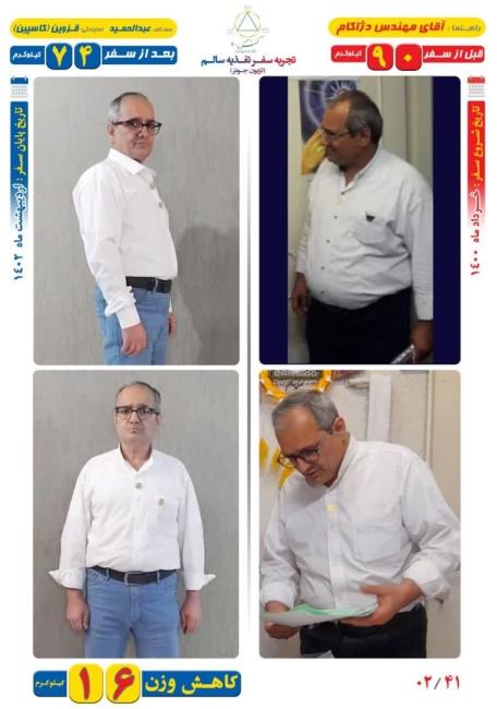 کاهش و افزایش وزن 16 کیلو کاهش وزن مسافر عبدالحمید با روش Dezhakam کنگره 60 8 دي قبل از سفر: 90 کیلوگرم ، بعد از سفر: 74 کیلوگرم