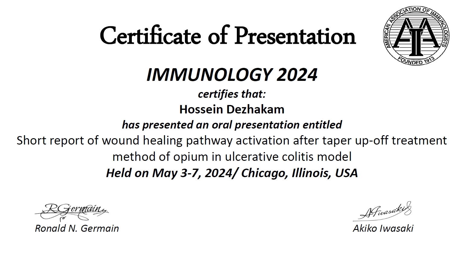 گزارش کوتاه علمی از فعالسازی مسیر بهبود زخم پس از استفاده از روش درمانی افزایش- کاهش تدریجی تریاک در مدل کولیت اولسراتیو