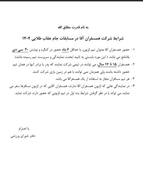 شرایط و قوانین مربوط به حضور همسفران آقا در تیم‌های ورزشی