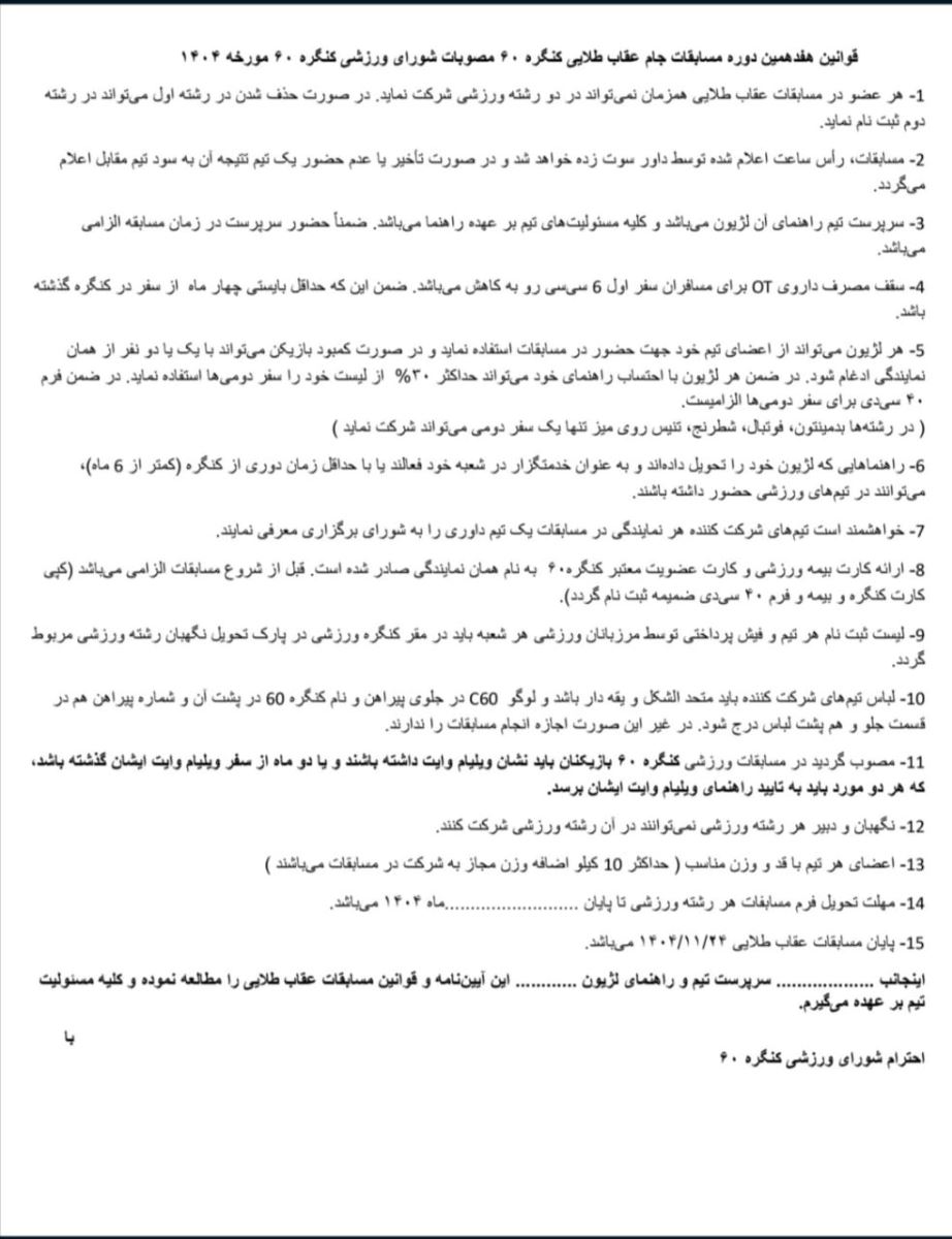 شرایط و قوانین مسابقات جام عقاب طلایی: