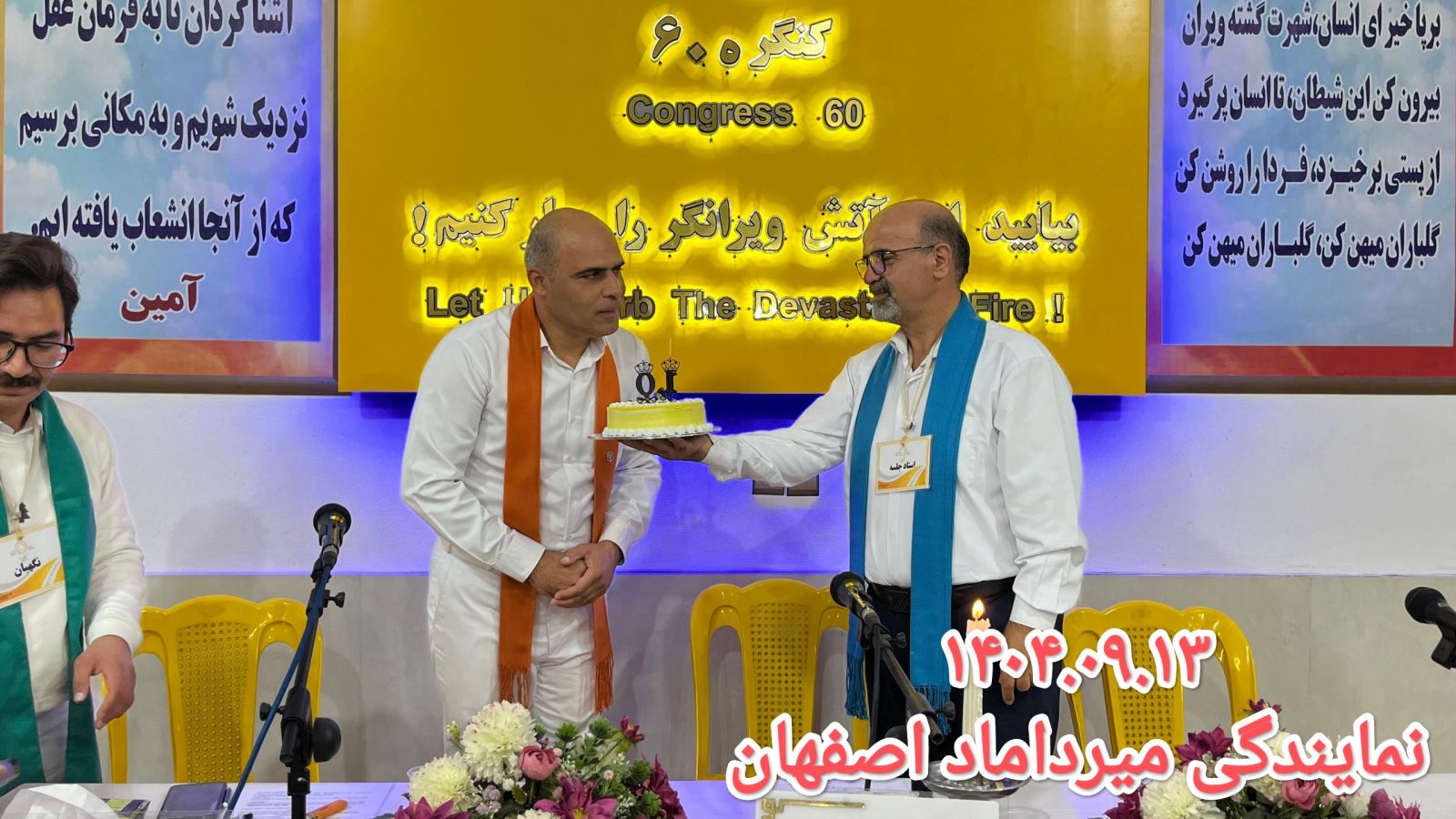 در مورد دوران مصرفم و تخریب، بنا به گفته آقای مهندس مصرف کننده خود درد است و خود درمان است و هر یک از ما بخواهیم از زندگیمان بگوییم یک کتاب ۶۰ درجه میتوان نوشت. من هم مثل بقیه با تخریب بسیار بالای شیشه و شیره و هروئین وارد کنگره شدم و اصلاً امیدی به درمان نداشتم و روز اولی که در لژیون تازه واردین در شعبه شیخ بهایی مشاوره شدم راهنمای تازه واردین این نکته را به من گفتند که من یک سال است که رهاشدهام و اصلاً دلم مواد نمیخواهد و وسوسه ندارم؛ آنجا من ارتباطم با کنگره برقرار شد. در ادامه قصد ماندن در کنگره را نداشتم، اما به مرور در کنگره ماندگار شدم و اینجا بود که معنای صلح آرامش و ارتباط با مردم را متوجه شدم. در کنگره ما نقش بازی نمیکنیم و هر شخصی از رفتار و کردار و گفتارش مشخص است که حالش خوب است یا نیست. ما افراد سفر دوم هر روز صبح ورزش میکنیم و خیلی دستاوردهایی را که داریم در بیرون از کنگره هنوز هیچکس نتوانسته است آنها را کسب کند. یکی از مهمترین مسائلی که در کنگره وجود دارد مهر و محبت بین افراد است و در جمع بودن اعضا است که باید سپاسگزار این نعمت بزرگ باشیم. من در سفر دوم بعد از رهایی از دام اعتیاد توانستم خیلی مشکلاتم را حل بکنم با خدمت کردن و آموزشهای کنگره هر چه جلوتر میروم متوجه میشوم که دریافتهایم بیشتر است و تمام برکتهای معنوی و مادی در کنگره به زندگی خود من بازمیگردد. زبان من به غیر از تشکر و سپاسگزاری نمیتواند چیز دیگری را بیان کند؛ بنابراین تشکر مینمایم از جناب مهندس دژاکام بنیان کنگره ۶۰ و دیدهبان محترم آقای اصغر منصوری که آموزشهای زیادی به من دادند و از همه مهمتر آموزشی که به من از ایشان دریافت کردم مردمداری است. همچنین از راهنمای عزیزم آقای جمالی که امروز به علت بیماری نتوانستند تشریف بیاورند کمال تشکر و سپاسگزاری را دارم و از همسفر محترمم که پا به پایه من در دوران تخریب و هم اکنون همچنان همراه و همسفر من بودند تشکر مینمایم و جا دارد از راهنمای همسفرم خانم نسیم که با آموزشهایشان باعث آرامش در زندگی ما شدند تشکر مینمایم.
