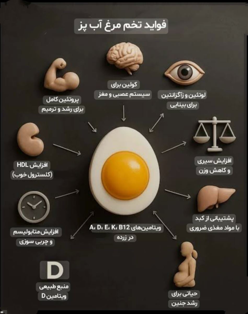 جناب اقای مهندس میفرماید: برای تغذیه مناسب و کاهش وزن یا اضافه وزن در طول هفته پنج روز صبحانه تخم مرغ آب پز و یک کف دست نان میل کنید، دلیل آن چیست؟ باید بدانیم، مصرف پروتئین در صبح، جذب کلی روزانه را بهبود می بخشد، زیرا بدن در این زمان آمادگی بالایی برای استفاده از آمینواسیدها دارد.