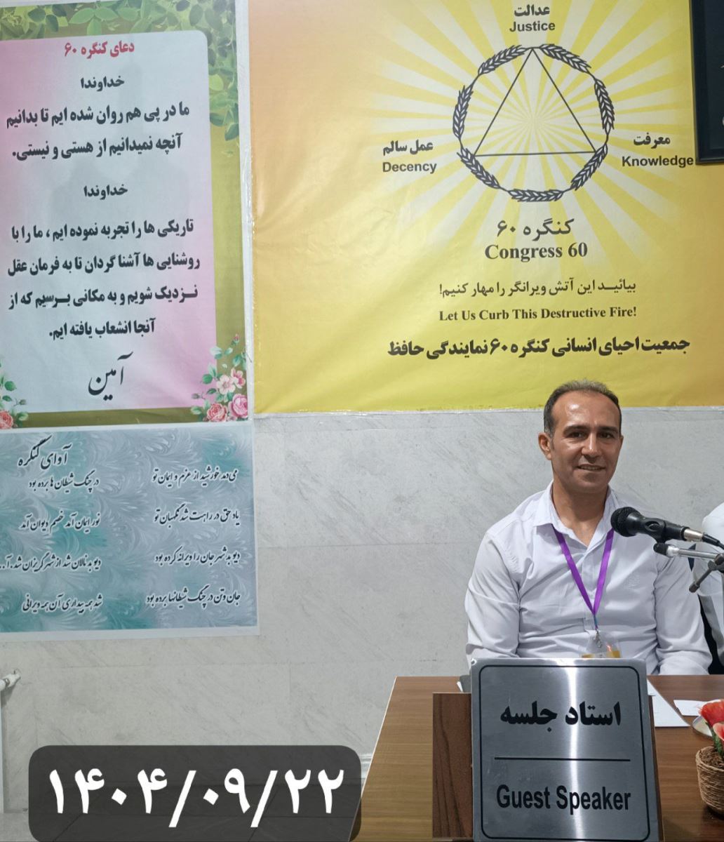 سلام دوستان حمید هستم یک مسافر از گروه مرزبانی و ایجنت محترم تشکر می کنم که اجازه ی خدمت در این جایگاه را به بنده واگذار کردند. در مورد دستور جلسه در کنگره ۶۰ چگونه قدر دانی کنیم؟ قدر دانی و قدر به اندازه ی جایگاه بر میگرده که اگر اندازه ها را بدانیم میتوانیم کارمان را درست انجام بدهیم بنده اگر آشپز هستم اندازه ی ادویه چاشنی حبوبات و دستور پخت غذا را بدانم میتوانم جایگاه خودم را به درستی در محل کارم بدست آورم؛ جناب آقای مهندس الگوی همه ی ما هستند چون اندازه ها را دقیق میدانند و این سیستم را مهندسی میکنند.