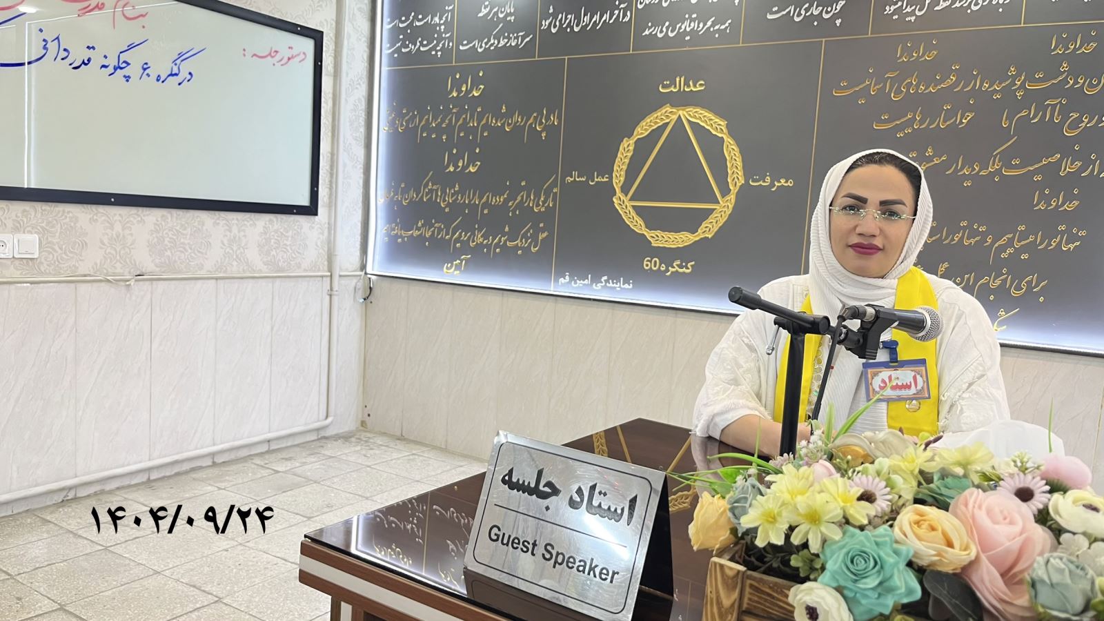 از خداوند سپاسگزارم که یکبار دیگر روزی من شد در این جایگاه قرار بگیرم. از خانم مرضیه نگهبان لژیون سردار تشکر می‌کنم که به من اجازه دادند در این جایگاه خدمت کنم و آموزش بگیرم. دستور جلسه امروز «در کنگره۶۰ چگونه قدردانی کنیم؟» می‌باشد. قدردانی به معنی تشکر و سپاسگزار بودن است. زمانی که صحبت از سپاسگزار بودن می‌شود، می‌دانیم که خداوند نعمت‌های فراوانی به ما داده است و ما باید سپاسگزار خداوند باشیم. یک‌سری از این نعمت‌ها را خداوند مستقیم به ما نمی‌دهد، بلکه افرادی را وسیله قرار می‌دهد تا این خدمات را به ما برسانند.