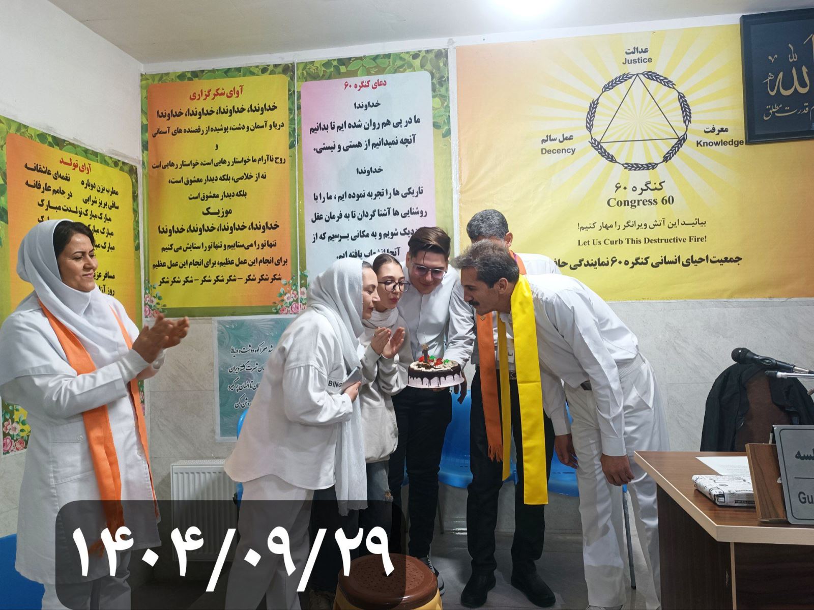 بخش دوم دستور جلسه تولد مسافر عزت است که ایشان با حال خراب وارد کنگره شدند هم از لحاظ فیزیولوژی و جهانبینی بسیار در وضعیت بدی بودند مصرف آن شیشه بود که امیدی به درمان نداشتند .با مصرف B2وارد لژیون بنده شدند . عزت الله که در طول سفر ازارتفاع افتادند که بسیار آسیب دیدند که بنده خودم را به ایشان رساندم که دیدم حالش بسیار بد بود که گفتند به ایشان مورفین تزریق کردند و گفتم که اصلا ایرادی ندارد با اینکه وضعیتش بهم خورده بود ،خواسته بسیار قوی داشت که همانند وادی یازدهم دوست داشت به اقیانوس برسد وایشان بسیار عشق خدمت داشت که باعث شد هر روزحالش بهتر شود واینکه به علت آن مشکل ،بیکار هم شد اما توانست با تمام مشکلات رها شود و درادامه درکنگره خدمتگزار شود وبا جون ودل خدمت را انجام داد وهیچ زمان از خدمت خسته نشد وبه خودش وهمفسراش وپسرش امیر وراهنمای همسفرش تبریک میگویم. امیدوارم که درادامه شال راهنمایی را دریافت نماید.