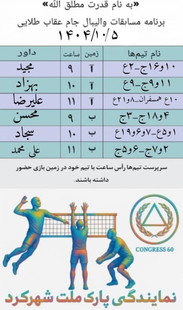 تربیت بدنی برنامه مسابقات والیبال جام عقاب طلایی نمایندگی پارک ملت شهرکرد منبع: پارک ملت(شهرکرد) چهار شنبه 3 دي 1404 تعداد بازدید از این مطلب : 141 ارسال:مرزبان خبری مسافر سجاد منبع: پارک ملت(شهرکرد) چهار شنبه 3 دي 1404 تعداد بازدید از این مطلب : 141 ویژه ها هشدار نایدا: وقفه در بروزرسانی و ارائه برخی از خدمات به دلیل وقفه در تأمین بودجۀ دولتی امریکا پذیرش مقاله مهندس حسین دژاکام برای ارائه در کنفرانس "مراقبت از اعصاب"،شیکاگو، امریکا (2026) گامی سرنوشتساز از سوی مهندس حسین دژاکام در درمان کووید-۱۹ و سارس مقاله "تأثیرات رفتاری و مولکولی پروتکل دی اس تی بر مدل حیوانی اعتیاد به تریاک" از مهندس حسین دژاکام، درصدر محافل علمی دنیا مورد بررسی و پذیرش قرار گر ارائه مقاله جدید و برجسته مهندس حسین دژاکام در حوزه درمان اعتیاد با روش DST با دقت سلولی مولکولی در کنفرانس بین المللی درمان اعتیاد در اورلاندو، فلوری دستاورد شگفتآور دیگری از تیم تحقیقاتی کنگره 60 در ریسرچ گیت منتشر گردید. دستاورد شگفت آور دیگری از کنگره 60، انتشار مقاله مهار متاستاز سرطان سینه به صورت short communication رویکردی نوین در درمان سرطان