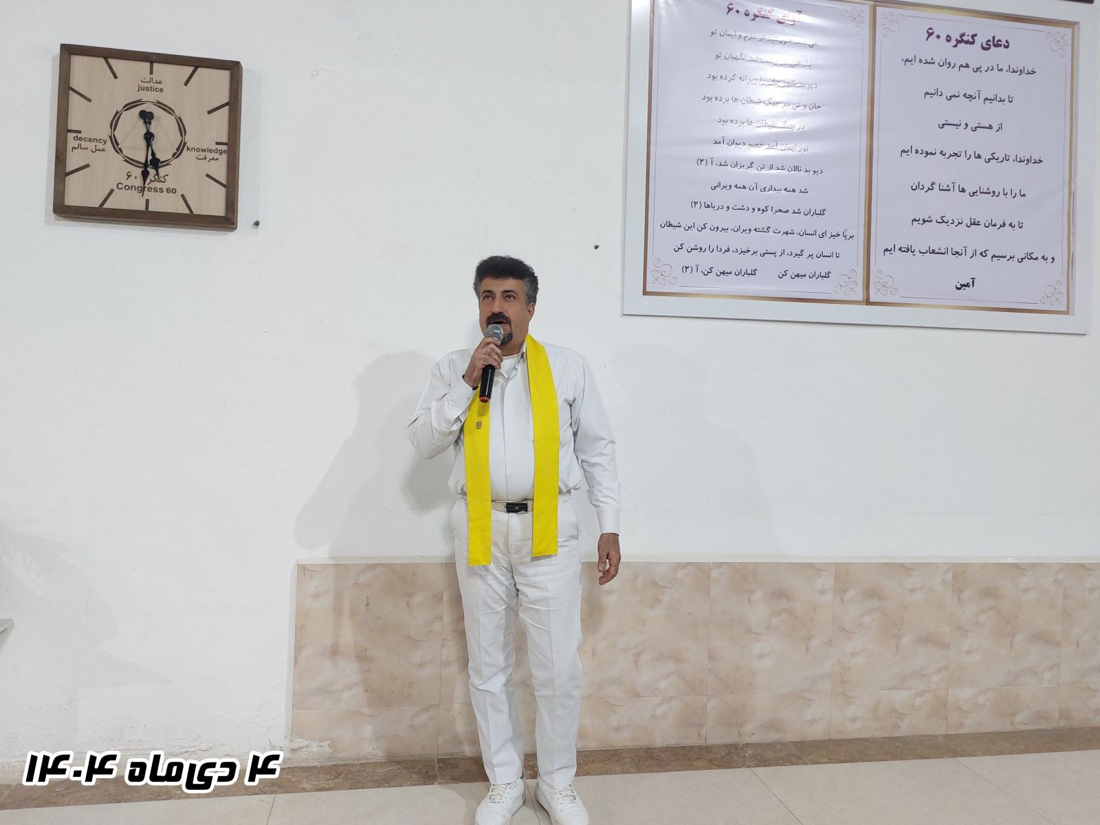 ما در کنگره۶۰ در مسیر حرکت قرار داریم و عقل، انضباط و احترام از اصول اساسی آن محسوب میشود. با آموزش، تزکیه و استمرار روزبهروز پیشرفت میکنیم و این پیشرفت به طور طبیعی در زندگی بیرون از کنگره۶۰ نیز ادامه پیدا میکند. در پایان از همه شما عزیزان که در این جشن حضور داشتید و با مشارکتهای زیبای خود انرژی مضاعفی به من بخشیدید صمیمانه تشکر میکنم.