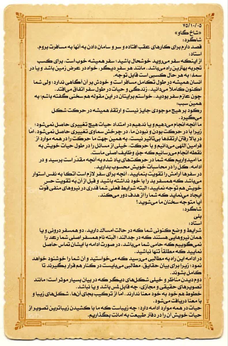 چون عازم سفر بودید، خواستم برایتان در این مقوله هم سخنی گفته باشم؛ به همین سبب: