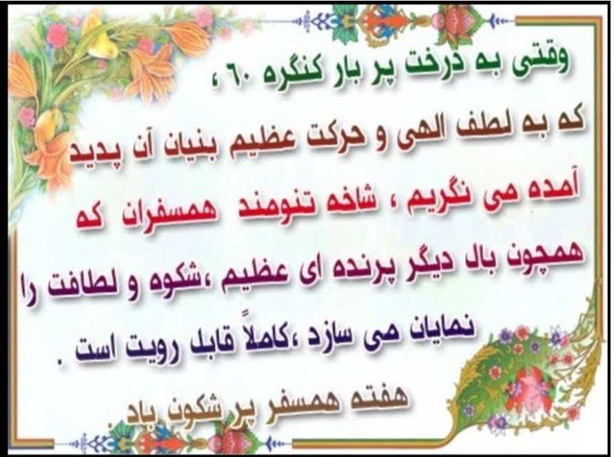 اوایل سفر دلنوشتهای نوشتم از دردها و روزهای سختی که به خاطر عشق گذرانده بودم، امسال از روزهایی که پر از حس خوب، پر از عشق، همدری و همراهی بود، میخواهم بگویم. از روزهایی که با ورود به کنگره به دست آوردم، روزهای اولی که مسافرم وارد کنگره شد، واقعاً امیدی نداشتم، میگفتم: اینبار هم مانند دفعات قبل است و من ناامیدتر از گذشته بازمیگردم. ۲ ماه از سفر مسافرم گذشته بود که به دلیل فوت عزیزمان، مجبور به سفر شدیم، مسافرم دارو کم برده بود و لغزش کرد، وقتی برگشتیم به راهنمای خود گفت و ایشان سقوط آزاد را درنظر گرفتند؛ سه روز سخت را گذراندیم، بعد سه روز مسافرم برای آزمایش رفت، آنجا بود که راهنمای مسافرم من را تشویق کردند که به کنگره بیایم. وارد کنگره شدم و از آموزشهای ناب کنگره استفاده کردم و روزهای خوش آغاز شد؛ امروز تازه میفهمم زندگی کردن یعنی چه! مطلبی خواندم که نوشته بود: آمدهایم تا با زندگی کردن قیمت پیدا کنیم، نه به هر قیمتی زندگی کنیم، قبل از کنگره به هرقیمتی زندگی میکردیم، اما امروز یاد گرفتیم با زندگی کردن درست و در صراط مستقیم قیمت پیدا کنیم. امروز از آن همه تاریکی، ناامیدی و خستگی رها شدهام، در آرامش و امیدواری زندگی میکنم، از جناب مهندس که برای من معجزهای بزرگ در زندگی هستند و خانواده محترم ایشان تشکر و قدردانی میکنم؛ از خداوند میخواهم بهترینها را نصیب آقای مهندس و خانوادهشان کنند؛ آمین.