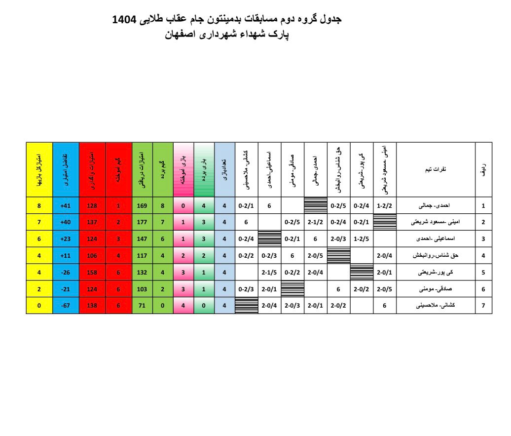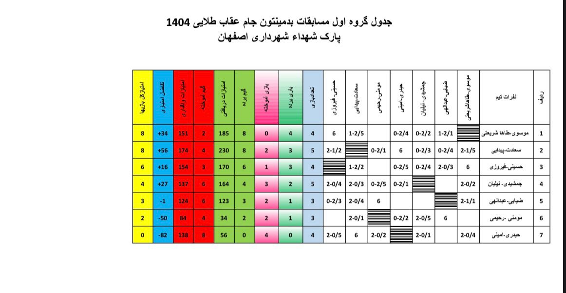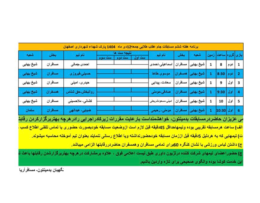 تربیت بدنی جدول برنامه هفته ششم مسابقات بدمینتون و گروه بندی هفدهمین دوره مسابقات عقاب طلایی بدمینتون منبع: پارک شهدای شهرداری (اصفهان) سه شنبه 9 دي 1404 تعداد بازدید از این مطلب : 12 گروه اول گروه دوم نتیجه مسابقات در هفته پنجم برنامه هفته ششم ارسال مطلب : مسافر امیرحسین منبع: پارک شهدای شهرداری (اصفهان) سه شنبه 9 دي 1404 تعداد بازدید از این مطلب : 12 ویژه ها هشدار نایدا: وقفه در بروزرسانی و ارائه برخی از خدمات به دلیل وقفه در تأمین بودجۀ دولتی امریکا پذیرش مقاله مهندس حسین دژاکام برای ارائه در کنفرانس "مراقبت از اعصاب"،شیکاگو، امریکا (2026) گامی سرنوشتساز از سوی مهندس حسین دژاکام در درمان کووید-۱۹ و سارس مقاله "تأثیرات رفتاری و مولکولی پروتکل دی اس تی بر مدل حیوانی اعتیاد به تریاک" از مهندس حسین دژاکام، درصدر محافل علمی دنیا مورد بررسی و پذیرش قرار گر ارائه مقاله جدید و برجسته مهندس حسین دژاکام در حوزه درمان اعتیاد با روش DST با دقت سلولی مولکولی در کنفرانس بین المللی درمان اعتیاد در اورلاندو، فلوری دستاورد شگفتآور دیگری از تیم تحقیقاتی کنگره 60 در ریسرچ گیت منتشر گردید. دستاورد شگفت آور دیگری از کنگره 60، انتشار مقاله مهار متاستاز سرطان سینه به صورت short communication رویکردی نوین در درمان سرطان