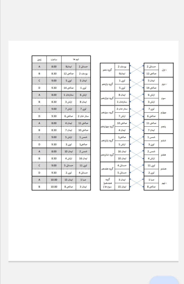 2) پانزده دقیقه قبل از شروع مسابقه حتما در زمین حضور داشته باشند