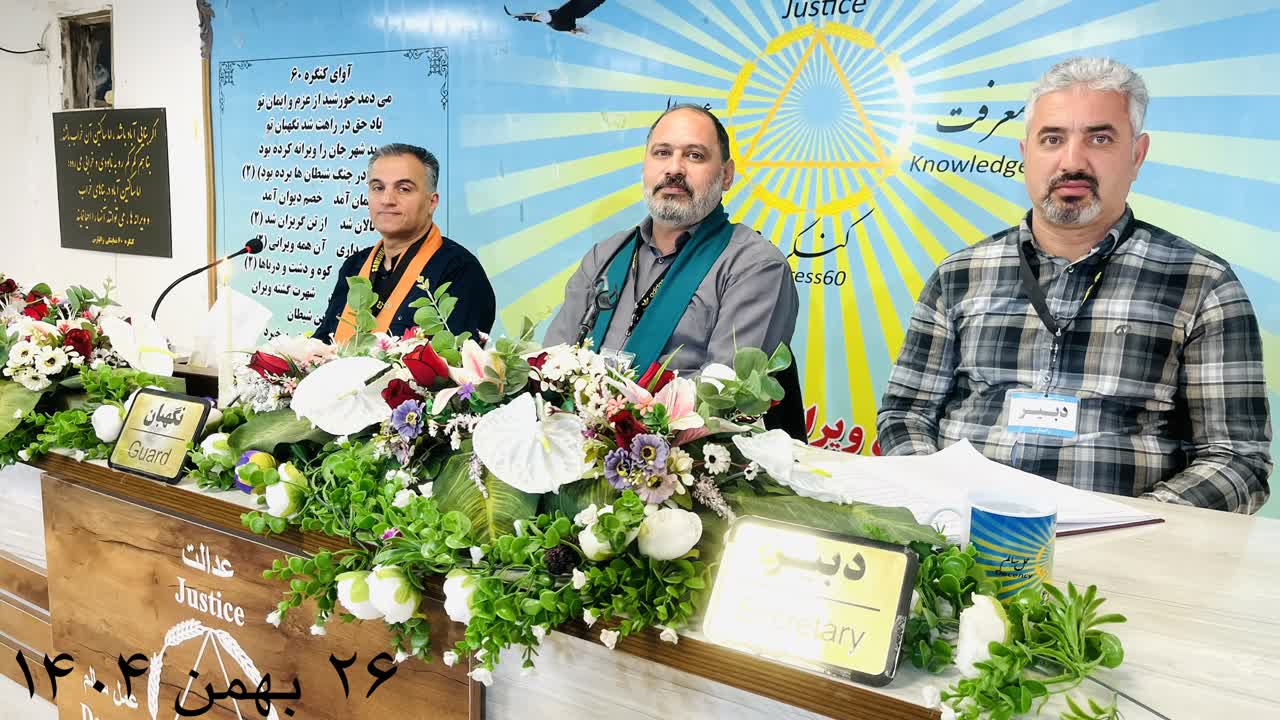 جلسه سوم از دوره هجدهم کارگاههای آموزشی خصوصی کنگرۀ ۶۰؛ نمایندگی زالپارس؛ با استادی راهنمای محترم مسافر مجتبی، نگهبانی مسافر سعید و دبیری مسافر علی با دستور جلسه: «هفته ی راهنمایان(DST،تازه واردین،ویلیام،جونز،ورزش،موسیقی)» یکشنبه 26بهمن 1404 راس ساعت 15:30 آغاز به کار کرد.
