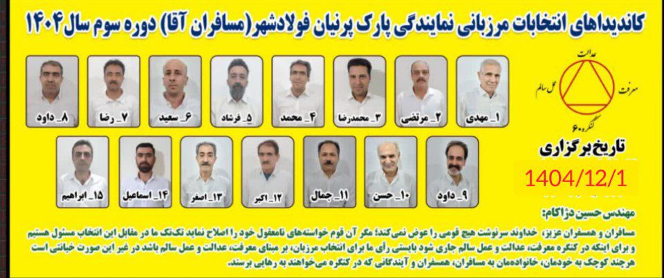 انتخابات مرزبانی پارک پرنیان فولادشهر دوره سوم مسافران آقا، برگزار میگردد.