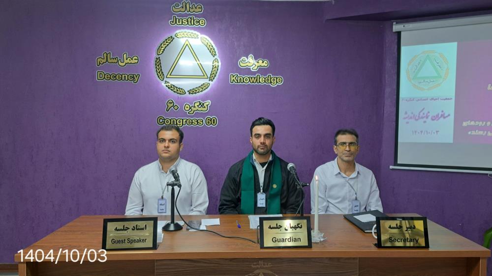 دستور جلسات هفتگي گروه خانواده_ از جنس نور 8 دي زاهنمای تازهواردین همسفر شیرین در رابطه با دستور جلسه از تجربه خود بیان کرد: امروز یاد گرفتهام مسئول حال خودم باشم.
