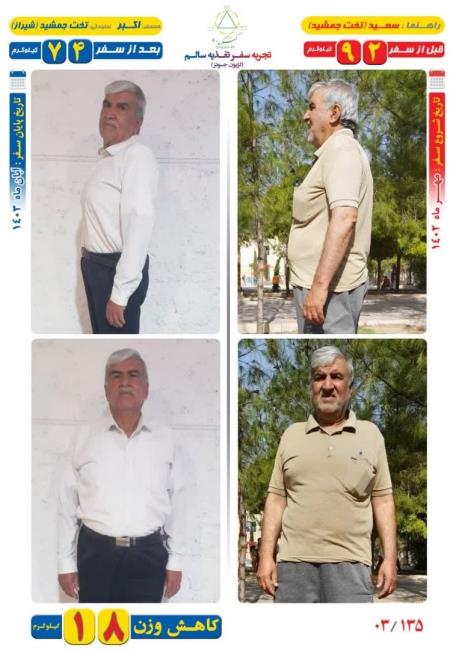 کاهش و افزایش وزن 18 کیلوگرم کاهش وزن مسافر اکبر به روش Dezhakam سه شنبه 30 دي 1404 قبل از سفر: 92 کیلوگرم ، بعد از سفر: 74 کیلوگرم