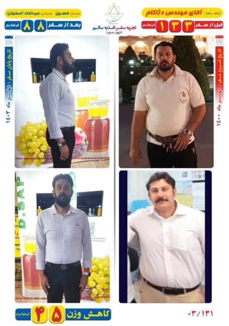 کاهش و افزایش وزن 35 کیلوگرم کاهش وزن مسافر منصور به روش Dezhakam سه شنبه 14 بهمن 1404 قبل از سفر: 114 کیلوگرم ، بعد از سفر: 79 کیلوگرم